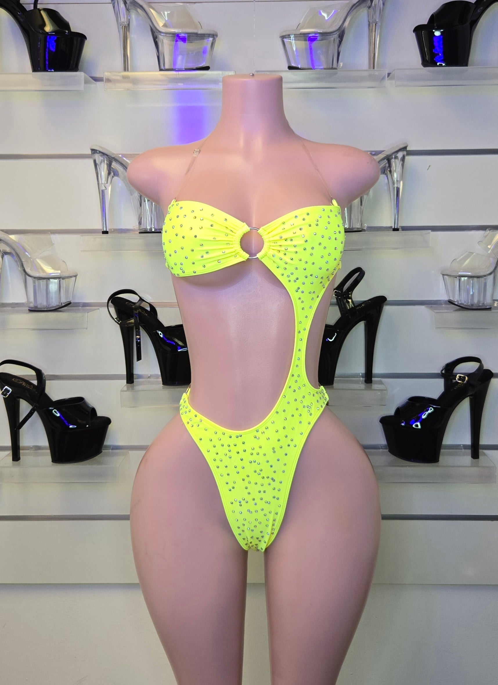 Each King Thong Body features strategic cuts that sculpt the waist, enhance the bust, and highlight the hips, creating a powerful, ultra-sexy silhouette. Crafted from premium stretch lycra and, depending on the model, embellished with high-shine rhinestones, it reflects light with every movement — perfect for strip clubs, pole dance stages, and high-energy nightlife environments. 💎