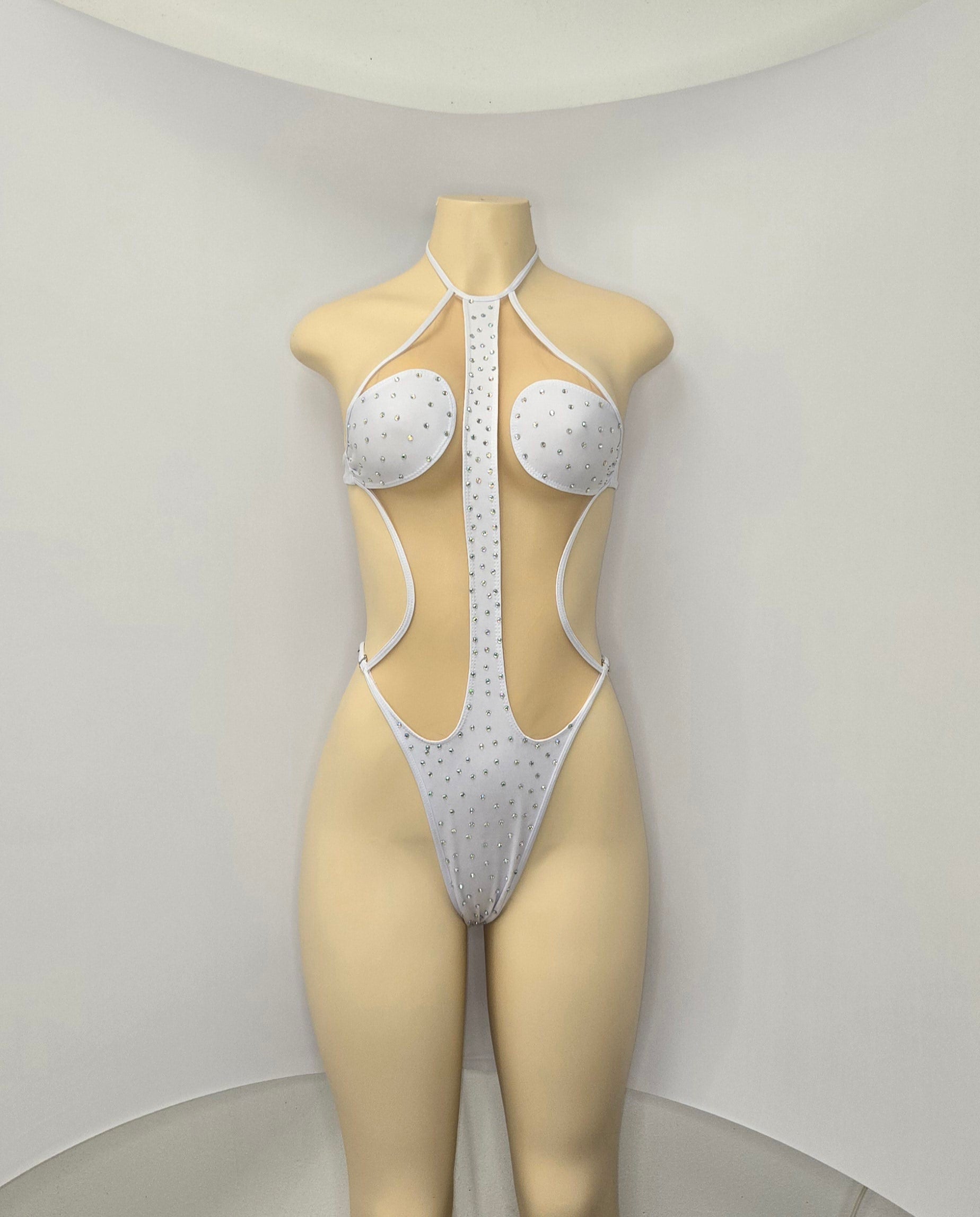 king thong bodysuit, rhinestone stripper bodysuit, on request pole dance outfit, exotic dancer costume, custom clubwear bodysuit, sparkly stagewear, sexy dancer bodysuit, professional stripper outfit, luxury pole wear, premium clubwear