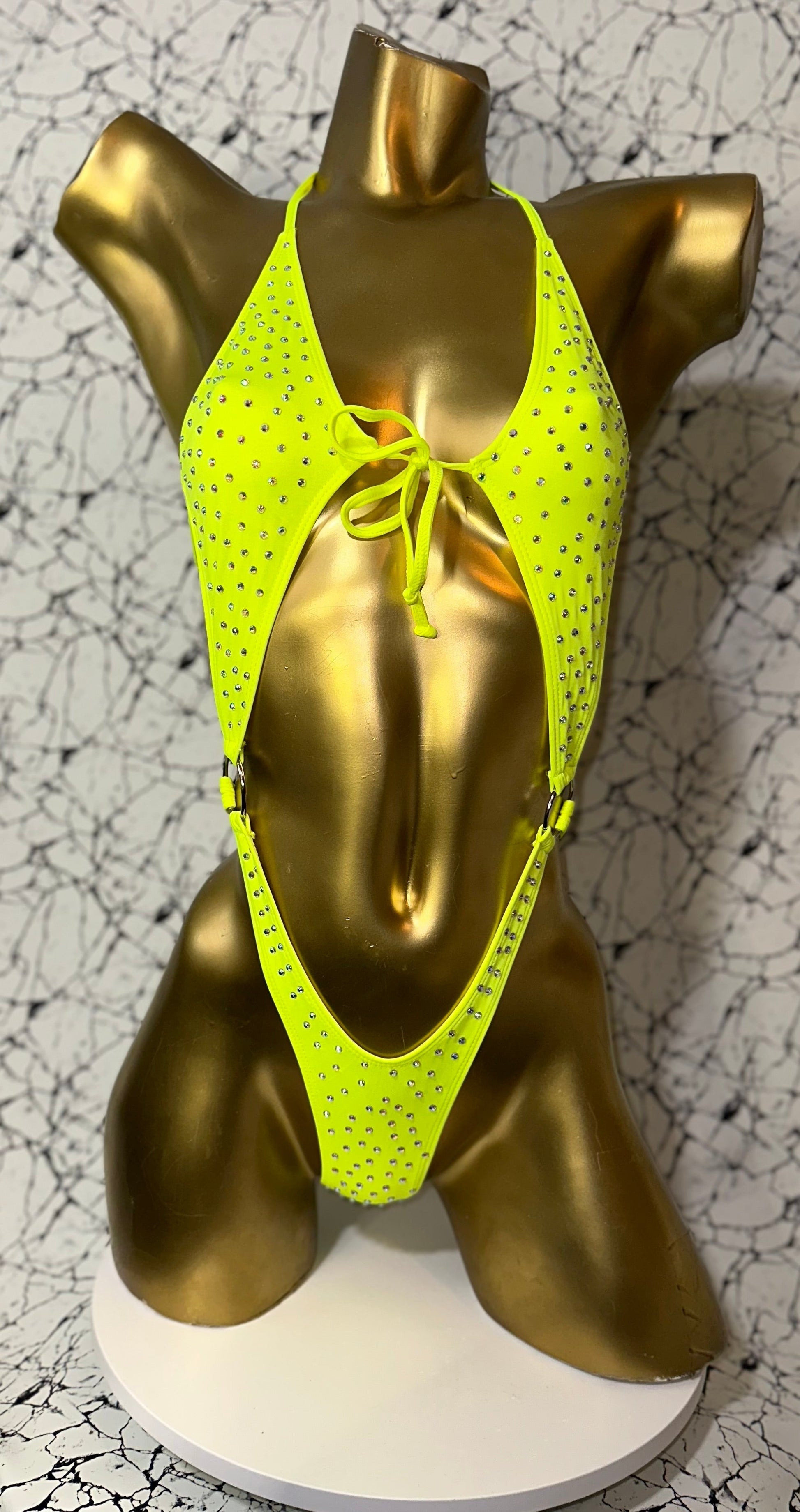 Designed with an adjustable halter neckline and flexible construction, it allows full freedom of movement while maintaining a body-hugging fit. The high-cut leg design visually elongates the body and highlights curves for a commanding stage presence. 🔥